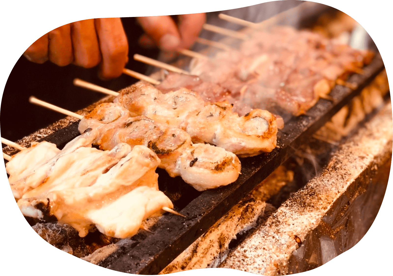 もちろん備長炭にて焼き上げます。燃えるときに赤外線を放ち、水蒸気を出さない為、食材の表面をパリッと仕上げて、旨みを逃しません。
